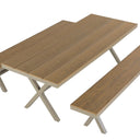 Chair: Aluminium Frame in Champagne color, Wood Effect polywood seating