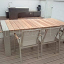 The Montpelier Dinning table is made of aluminium frame completed with teak wood top.Thanks to the natural elegance of this dining table, it will dress nicely your exterior.
