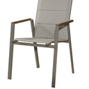 The Glenn Stacking Chair is made of aluminium and Phifertex® texliline, with teak wood armrests. It's an extraordinary garden chair, with a totally waterproof aluminium frame and a texteline cover. It's also ideal for high-end restaurants. The armrests are made from fine teak wood.
