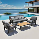 The sofa armrests and coffee table top are crafted from high-quality plastic wood, combining the texture of solid wood with exceptional performance. Resistant to decay and wear, they remain timeless and require minimal maintenance for effortless cleaning and upkeep.