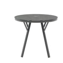 Yes aluminum HPL round table, which looks slim but stable, combines practicality with art, is firm and stable, and is not easy to topple. The middle umbrella hole on the table is convenient for umbrella release.