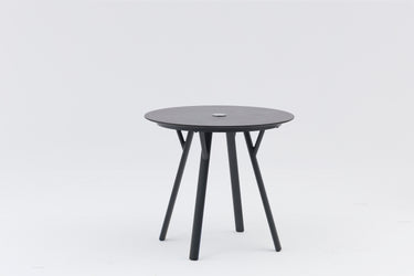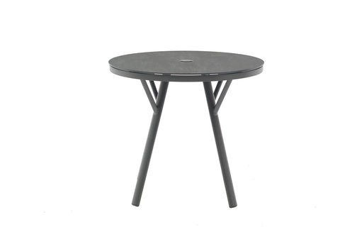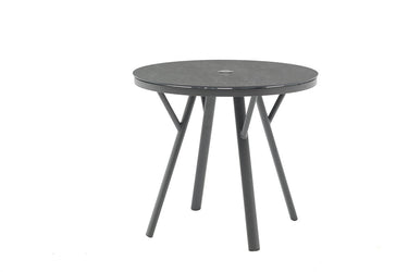 Yes aluminum HPL round table, which looks slim but stable, combines practicality with art, is firm and stable, and is not easy to topple. The middle umbrella hole on the table is convenient for umbrella release.