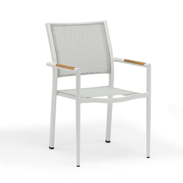 Chair : Batyline® texliline 7407-5374 White with Teak Wood armrest