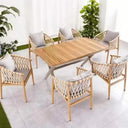 Chair: Aluminium Frame in Teak color, Beige Rope With Seat & Back Cushion