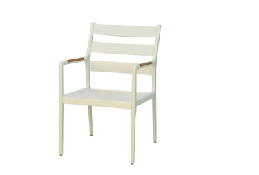 Chair: Aluminium Frame in White color with Sunbrella Seat Cushion,teak wood armrest
