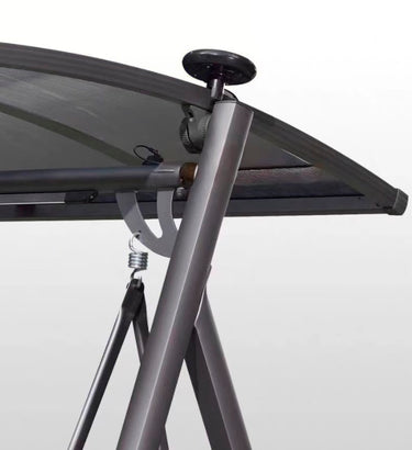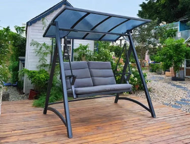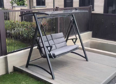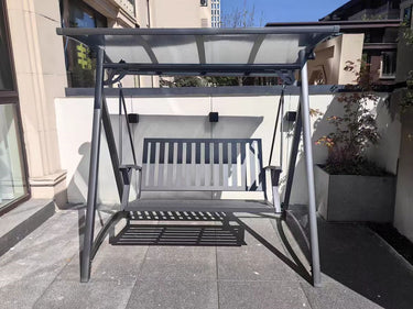 The Hoshi swing frame is made of galvanized steel material, which has undergone rust prevention and high-temperature baking paint treatment, making it difficult to oxidize. The aluminum alloy seat plate is matched with seat and back cushions, making it soft and comfortable. The canopy is designed with PVC material, which can easily adjust the angle. The romantic time machine in the courtyard, gently swaying, is eternal.