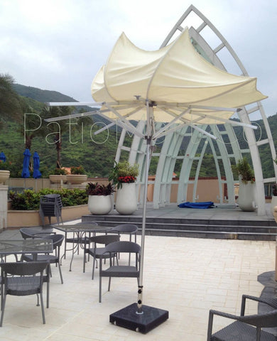 ***Please noted parasol base is not included.Constructed with aluminum, the Easywind Umbrella features a patented wind-resistance design. Enjoy your backyard's scenery while sitting in the cool shade and protecting your skin. Showcasing a solid aluminum bird finial at the top for added interest, this umbrella has a 48mm pole and a Beige canopy.