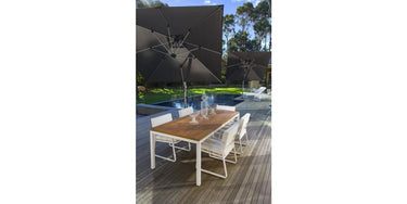 The quality of the marine-anodised alumium materials and solution dyed olefin canvas provide for a sturdy structure and guarantees longevity for all residential and commercial use, especially for seaside locations.