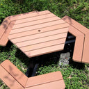 This picnic table and chair combination is made of environmentally friendly PE plastic wood, which is simple and fashionable. The corners are designed with rounded corners, which are safe and beautiful, and prevent collisions. Meeting various venue requirements brings you more possibilities. The material has a delicate touch and is resistant to corrosion and sun protection.