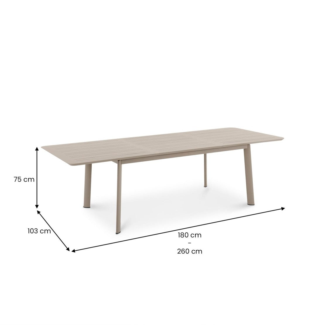 The VERANO garden table combines modern design with high functionality. Thanks to the practical butterfly pull-out, the table can be pulled in and out effortlessly - simply pull on one side and both sides open at the same time. This allows the table to be quickly extended to 260 cm on its own to create space for up to 8 people. The sturdy aluminium frame in fine champagne and the weatherproof workmanship make it a long-lasting highlight for your garden or balcony. Ideal for unforgettable outdoor moments.