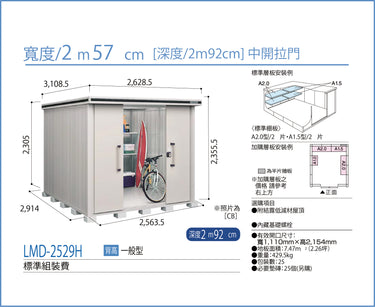 *預購* Yodoko [淀鋼置物櫃] 戶外儲物室 / 組合屋 LMD-2529 (W257cmxD292cm) 2款高度 ( 220 / 240cm )