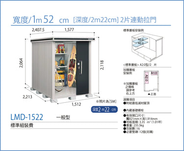 *預購* Yodoko [淀鋼置物櫃] 戶外儲物室 / 組合屋 LMD-1522 (W152cmxD222cm) 高度 ( 220 cm )