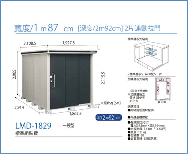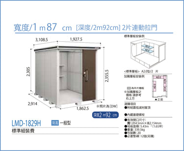 *預購* Yodoko [淀鋼置物櫃] 戶外儲物室 / 組合屋 LMD-1829 (W187cmxD292cm) 2款高度 ( 220 / 240cm )