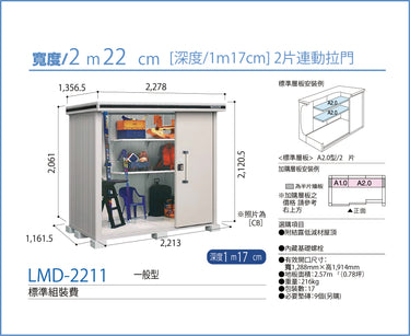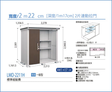 *預購* Yodoko [淀鋼置物櫃] 戶外儲物室 / 組合屋 LMD-2211 (W222cmxD117cm) 2款高度 ( 220 / 240cm )