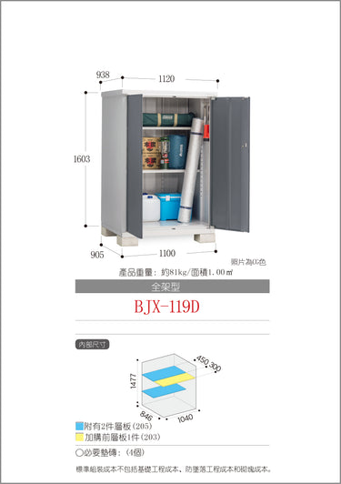 *預購* 稻葉牌戶外儲物櫃 Inaba BJX-119D (W1120XD938XH1603mm)1.684m3