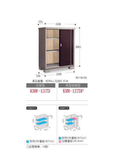 *Pre-order* Inaba Outdoor Storage Cabinets KMW-137D (W1340xD775xH1603mm) 1.665m3