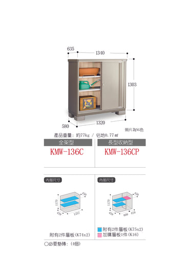 *Pre-order* Inaba Outdoor Storage Cabinets KMW Series - KMW-136C