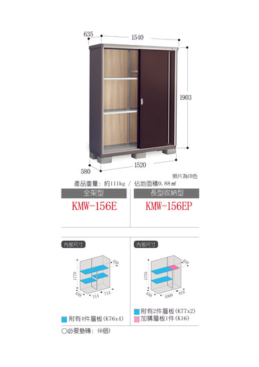 *預訂* 稻葉牌戶外儲物櫃 Inaba KMW-156E (W1540xD635xH1903mm) 1.861m3