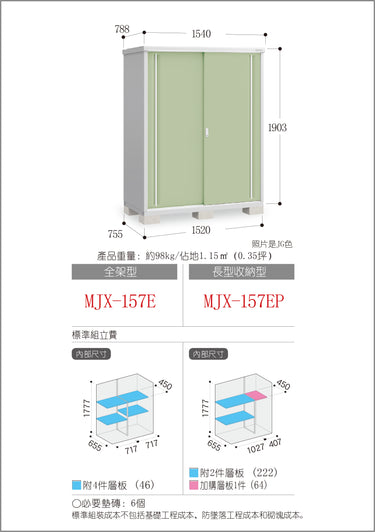 *預購* 稻葉牌戶外儲物櫃 Inaba MJX-157E (W1540xD788xH1903mm) 2.309m3