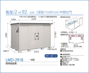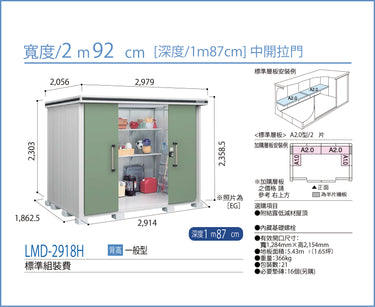 *預購* Yodoko [淀鋼置物櫃] 戶外儲物室 / 組合屋 LMD-2918 (W292cmxD187cm) 2款高度 ( 220 / 240cm )