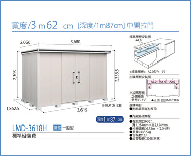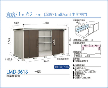 *預購* Yodoko [淀鋼置物櫃] 戶外儲物室 / 組合屋 LMD-3618 (W362cmxD187cm) 2款高度 ( 220 / 240cm )